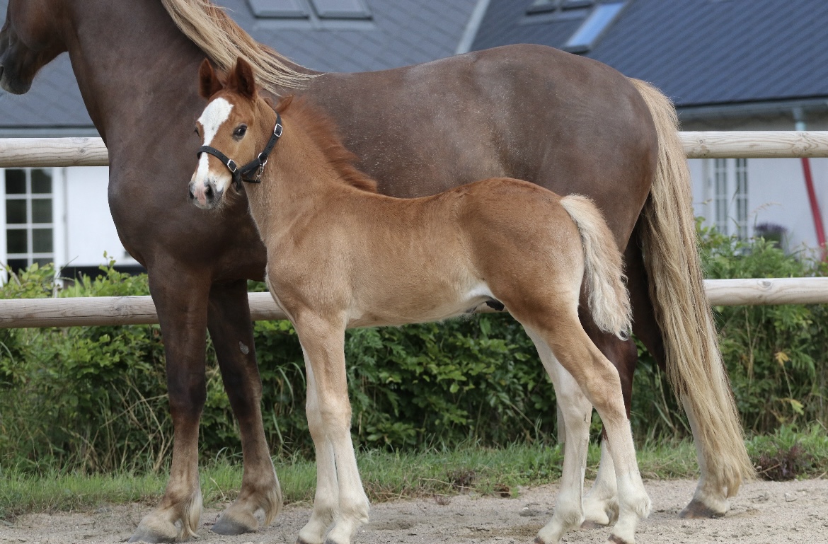 | SJØGAARDS PAINT ME PROUD xxxxxx Welsh Cob, hoppe, født: 2025, rød, forventet stangmål: ca. 146 cm | |