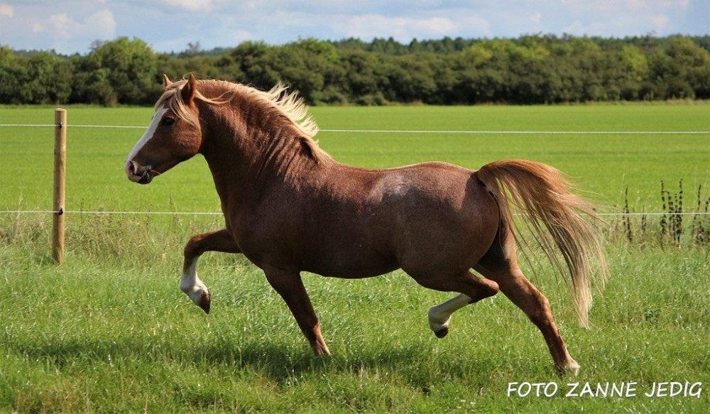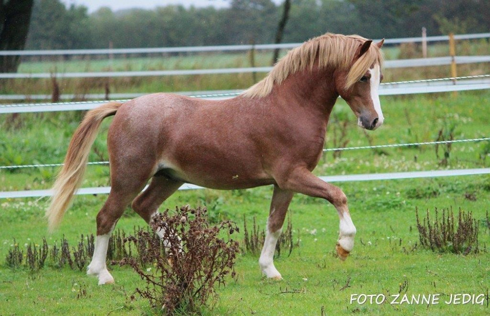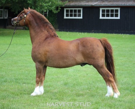 Harvest (DK) Univerdal Soldier (OS) WMH 146, kåret i 1. klasse Født: 23.04.2002, rød, stangmål: 116 Gjord: xxx Pibemål: 15 cm Far: Brierdene Napoleon WMH 134 Mor: Tanlan Unigryw WM 0894 Morfar: Friars Freelance 20998 WSB Kåringsbeskrivelse: Kompakt hingst af særdeles god type. Godt hoved med dejligt øje. God skulder. God overlinie, men lidt svag bagpart. Gode lemmer og gode hove. God fri bevægelse. Overben venstre for. KONTAKT: Zanne Jedig, 4720 Præstø Tlf: 40 85 93 83 mail: postmaster@stutteriharvest.dk |