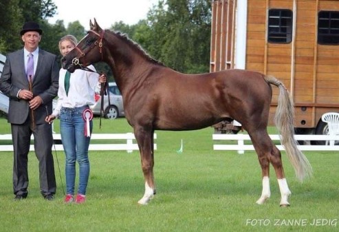Lundenæsgårds Falcon WFH 30 KÅRET i 2. klasse Født: 07.02.2014, rød, stangmål: 144 cm Gjord: xxx Pibe: 17,5 cm Far: Fiango W WFH 4 KONTAKT: Ejer: Julie Lund Kristensen, Balle Han står på Djursland. | |||